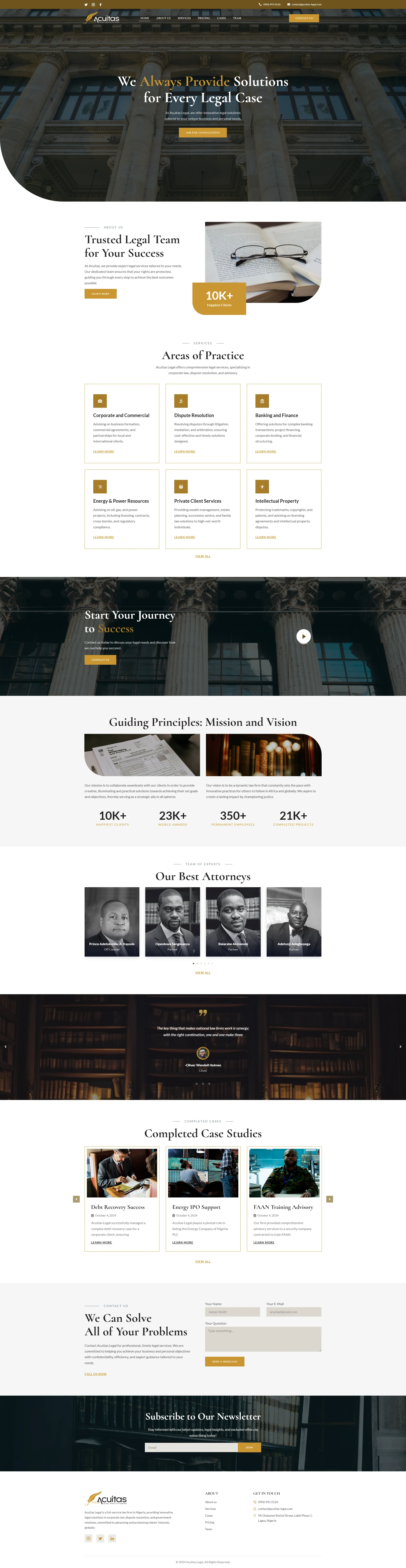 I designed and developed this professional website for Acuitas Legal Practitioners, a full-service Nigerian law firm specializing in corporate law, dispute resolution, and government relations. The site features: